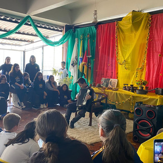 Na manhã de terça-feira, dia 13 de Setembro, os alunos Muriel e Daniel do 4º Ano encheram nossos alunos dos Anos Finais de emoção com suas apresentações. Cada um ficou responsável por tocar e cantar duas músicas homenageando nossos antepassados gaúchos.